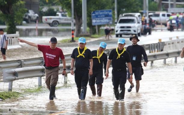ตรวจติดตามสถานการณ์อุทกภัย บริเวณจุดกลับรถใต้สะพานป่าโมกสะพานข้ามแม่น้ำเจ้าพระยา