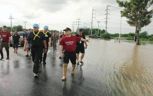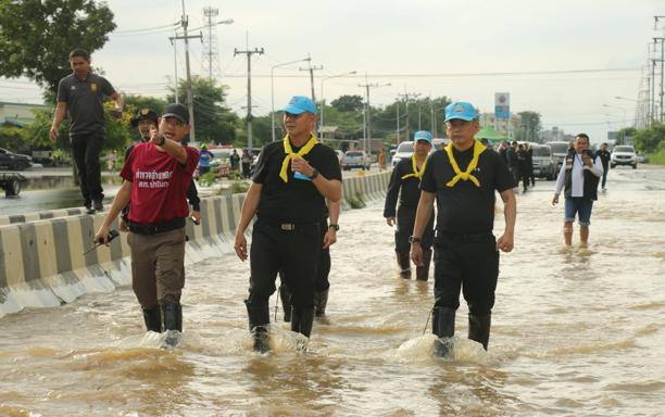 เดินทางมาตรวจติดตามสถานการณ์อุทกภัย บริเวณจุดกลับรถใต้สะพานป่าโมกสะพานข้ามแม่น้ำเจ้าพระยา เป็นเหตุให้น้ำท่วมบริเวณถนนเส้น 33 สุพรรณบุรี-อ่างทอง บริเวณช่วงก่อนขึ้นสะพานทั้งสองฝั่งระยะทางยาวประมาณ 150 เมตร ในพื้นที่ สภ.ป่าโมก จว.อ่างทอง