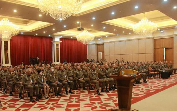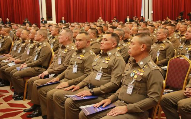 โดยมี พล.ต.อ.กิตติ์รัฐ พันธุ์เพ็ชร์ ผบ.ตร. พร้อมด้วย รอง ผบ.ตร., จตช., ผู้ช่วย ผบ.ตร., รอง จตช. พร้อมด้วยข้าราชการตำรวจระดับผู้บัญชาการหรือเทียบเท่า จำนวน 44 นาย และผู้บังคับการหรือเทียบเท่า จำนวน 294 นาย รวม 338 นาย ร่วมให้การต้อนรับและรับฟังนโยบาย ณ ห้องแจ้งยอดสุข ชั้น 3 อาคารศูนย์ฝึกอบรมพัฒนาบุคลากรและสวัสดิการ สำนักงานตำรวจแห่งชาติ