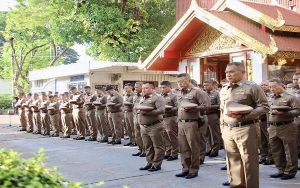 สวดมนต์ กล่าวคำปฏิญาณตนของตำรวจ กล่าวอุดมคติตำรวจ และ “ประกาศเจตนารมณ์เราไม่ใช่องค์กรอาชญากรรม”