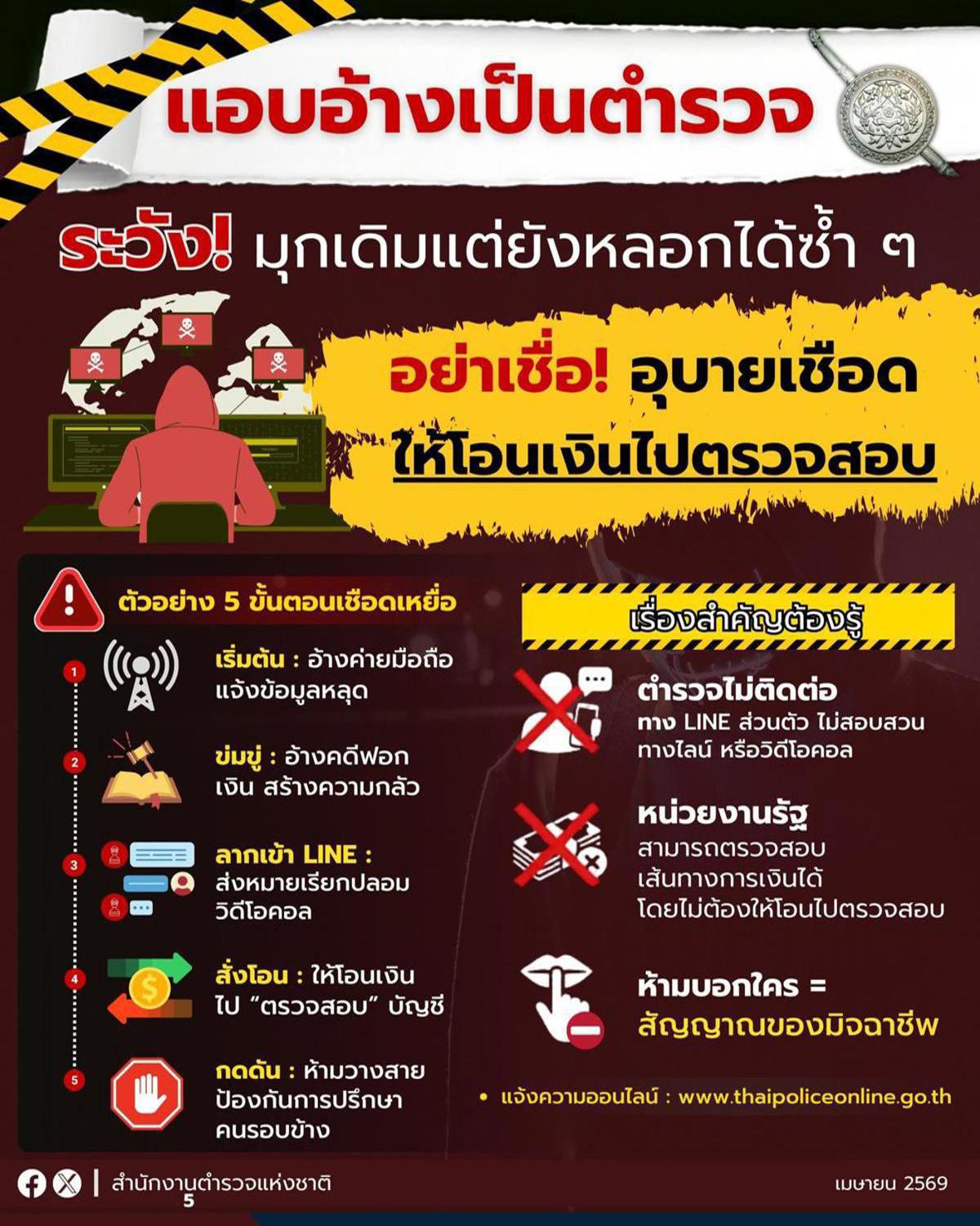 ????แอบอ้างเป็นตำรวจ มุกเดิม ๆ ของมิจฉาชีพที่ยังหลอกเหยื่อได้ซ้ำ ๆ