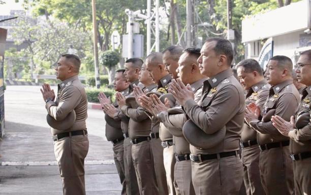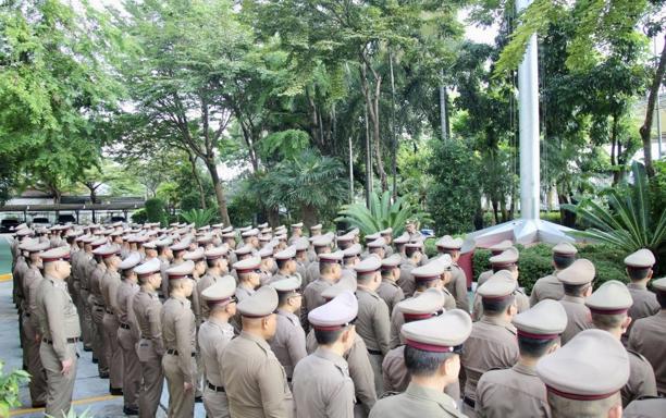 สวดมนต์ กล่าวคำปฏิญาณตนของตำรวจ กล่าวอุดมคติตำรวจ และ “ประกาศเจตนารมณ์เราไม่ใช่องค์กรอาชญากรรม”
