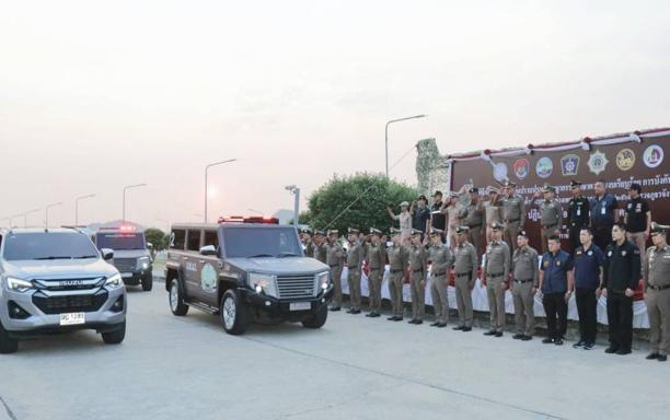 โดยมี พล.ต.ต.ธรรมนูญ เชาวะวนิชย์ ผบก.ภ.จว.สระบุรี พร้อมด้วย รอง ผบก.ภ.จว.สระบุรี, เจ้าหน้าที่ตำรวจ, ทหาร, สำนักงานป้องกันและบรรเทาสาธารณภัยจังหวัดสระบุรี, สำนักงานป้องกันและปราบปรามยาเสพติด ภาค 1, ฝ่ายปกครอง และอาสาสมัครป้องกันภัยฝ่ายพลเรือน จำนวนทั้งสิ้น 269 นาย รถยนต์ 46 คัน ร่วมพิธีฯ ณ ศูนย์ราชการจังหวัดสระบุรี