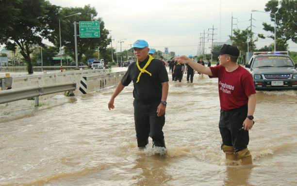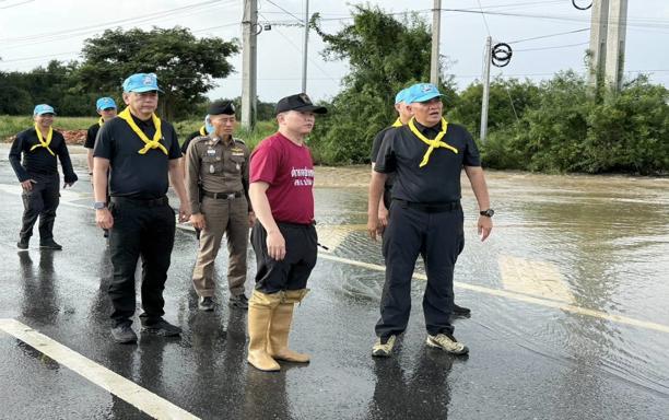 เดินทางมาตรวจติดตามสถานการณ์อุทกภัย บริเวณจุดกลับรถใต้สะพานป่าโมกสะพานข้ามแม่น้ำเจ้าพระยา เป็นเหตุให้น้ำท่วมบริเวณถนนเส้น 33 สุพรรณบุรี-อ่างทอง บริเวณช่วงก่อนขึ้นสะพานทั้งสองฝั่งระยะทางยาวประมาณ 150 เมตร ในพื้นที่ สภ.ป่าโมก จว.อ่างทอง