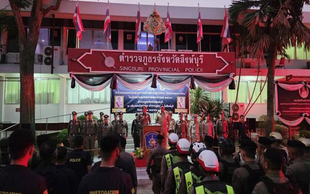 โดยมี พล.ต.ต.ธรรมนูญ เชาวะวนิชย์ ผบก.ภ.จว.สระบุรี พร้อมด้วย รอง ผบก.ภ.จว.สระบุรี, เจ้าหน้าที่ตำรวจ, ทหาร, สำนักงานป้องกันและบรรเทาสาธารณภัยจังหวัดสระบุรี, สำนักงานป้องกันและปราบปรามยาเสพติด ภาค 1, ฝ่ายปกครอง และอาสาสมัครป้องกันภัยฝ่ายพลเรือน จำนวนทั้งสิ้น 269 นาย รถยนต์ 46 คัน ร่วมพิธีฯ ณ ศูนย์ราชการจังหวัดสระบุรี